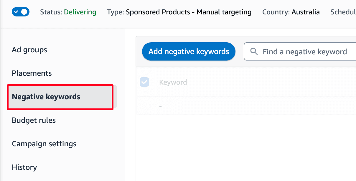 Once you’ve compiled your list of negative keywords, it’s time to put them to work. Here’s how to add negative keywords to your Amazon ad campaign.